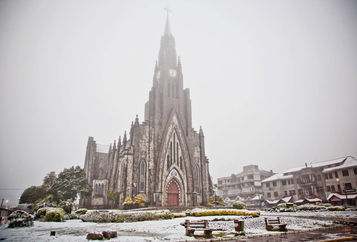 A imponente Catedral de Pedra é o coração de Canela e, sem dúvida, um dos principais atrativos da região. Seu estilo gótico, com torres que parecem tocar o céu, contrasta com o verde das árvores e o azul do horizonte. De dia, é um espetáculo arquitetônico; à noite, ganha um charme a mais com sua iluminação especial. Não é à toa que é um dos pontos mais fotografados do Rio Grande do Sul.